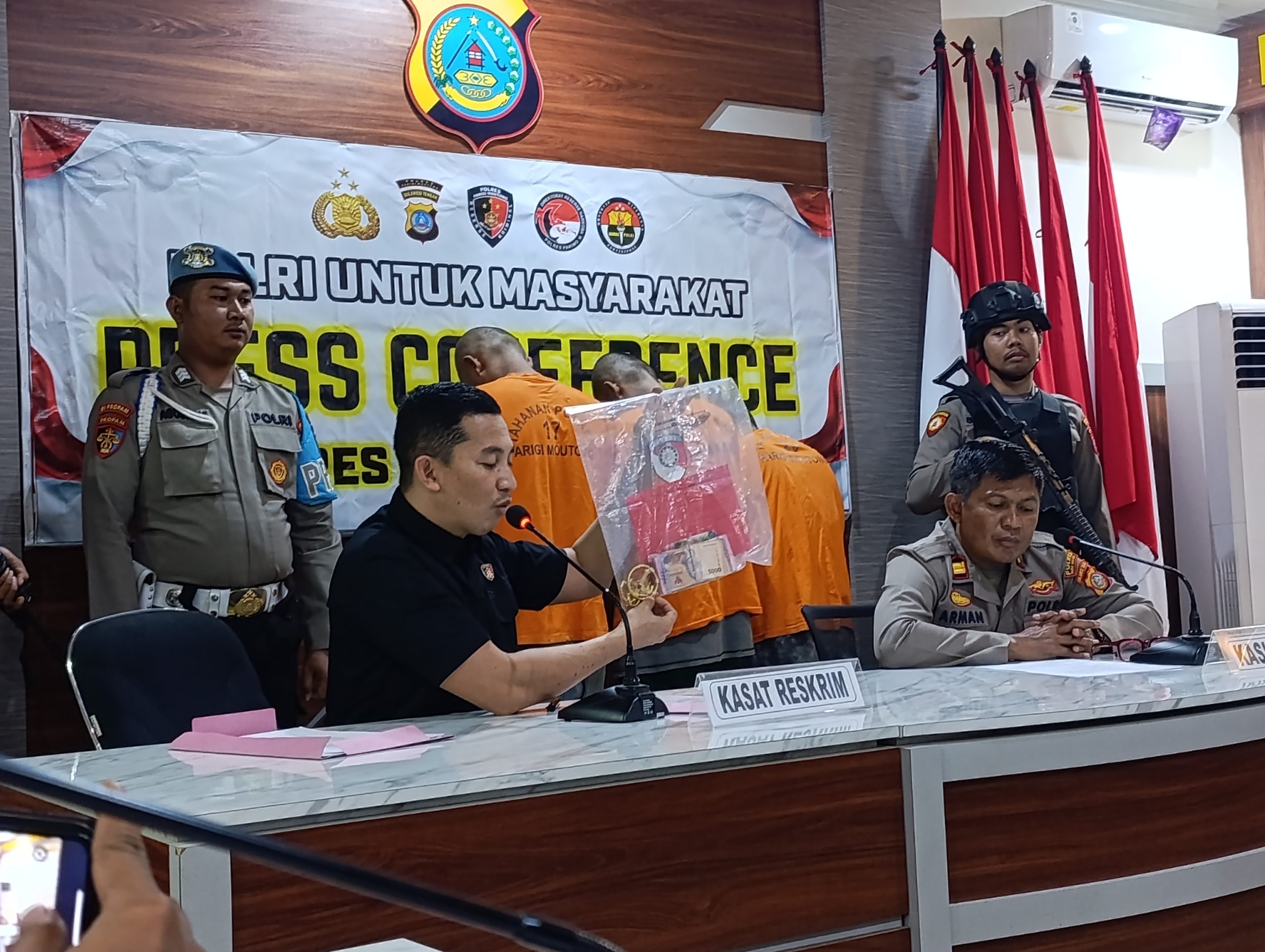 PARIGI MOUTONG, DIALOGIS.ID – Satuan Reserse Kriminal (Sat Reskrim) Polres Parigi Moutong berhasil mengungkap kasus pencurian uang tunai dan perhiasan emas yang dilakukan di beberapa lokasi di wilayah Kabupaten Parigi Moutong. Tiga pelaku berhasil diamankan setelah dilakukan penyelidikan intensif selama satu pekan.